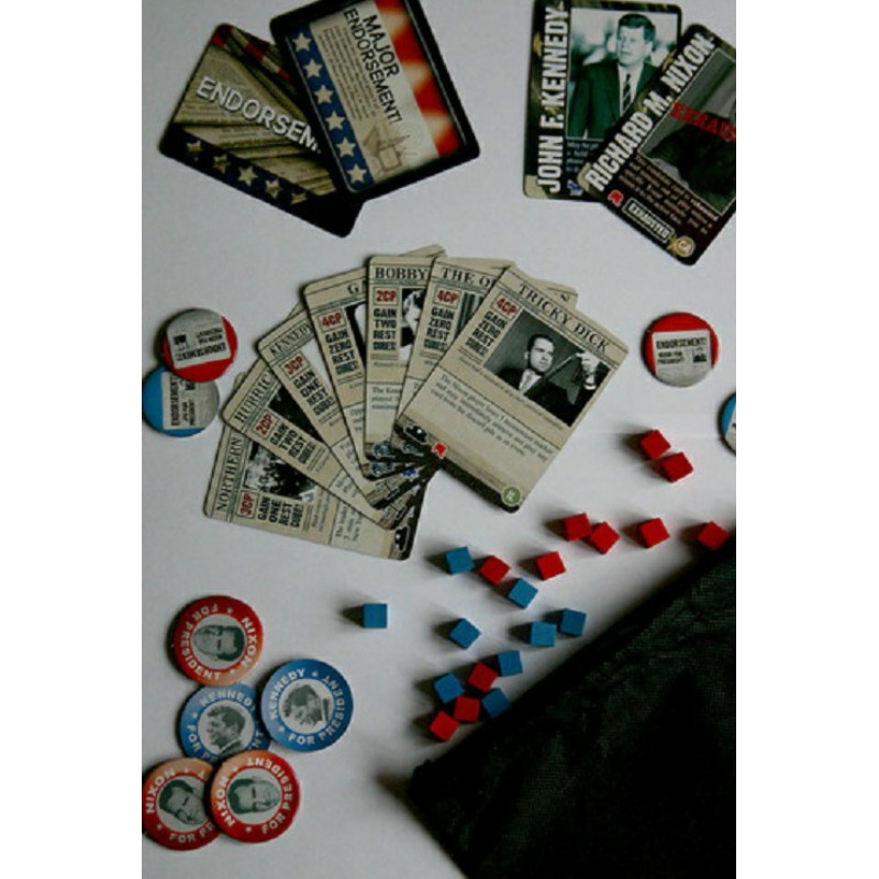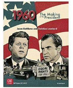 “As with any election campaign, the challenge is to adapt your game plan as the ground shifts out from under you. There are never enough resources or time to do everything, but you need to make the tough calls to propel yourself into the White House. This fast-playing strategy game for two players challenges you to run for the most powerful elective office in the world, at one of its most unique crossroads. Will you recreate history, or rewrite it? 1960: The Making of the President provides you the opportunity to do both.”