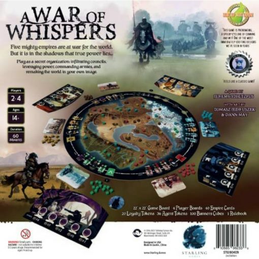 - a war of whispers is a game of area control, hidden agendas, and shifting loyalties, that offers deep strategy within a tight playing time.