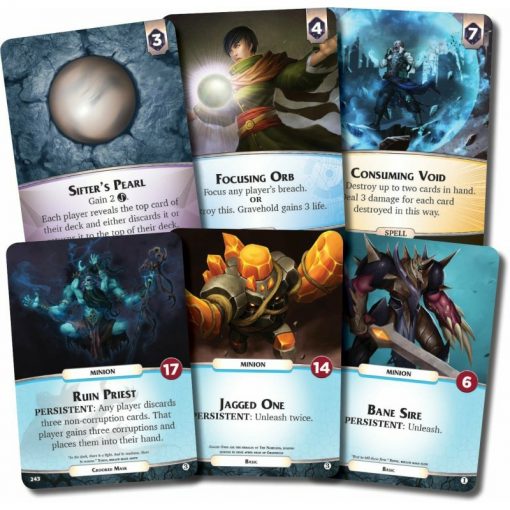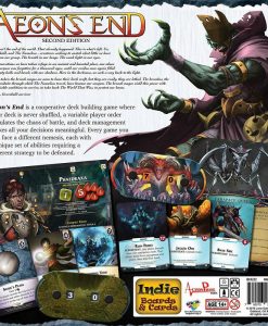 The survivors of a long-ago invasion have taken refuge in the forgotten underground city of grave hold. There, The desperate remnants of Society have learned that the energy of the very breaches the beings use to attack them can be repurposed through various gems, transforming the malign energies within into beneficial spells and weapons to aid their last line of defence: The breach mages. Aeon’s end is a cooperative game that explores the deckbuilding genre with a number of innovative mechanisms, including a variable turn order system that simulates The chaos of an attack, and deck management rules that require careful planning with every discarded card. Players will struggle to defend grave hold from the nameless and their hordes using unique abilities, powerful spells, and, most importantly of all, their collective wits.