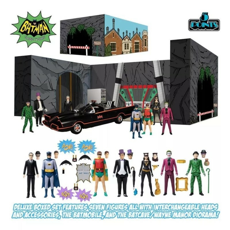 The 5 Points Batman (1966): Deluxe Boxed Set contains everyone’s favorite crime-fighting duo and a variety of Gotham City’s most notorious villains, each complete with their own interchangeable heads and accessories.