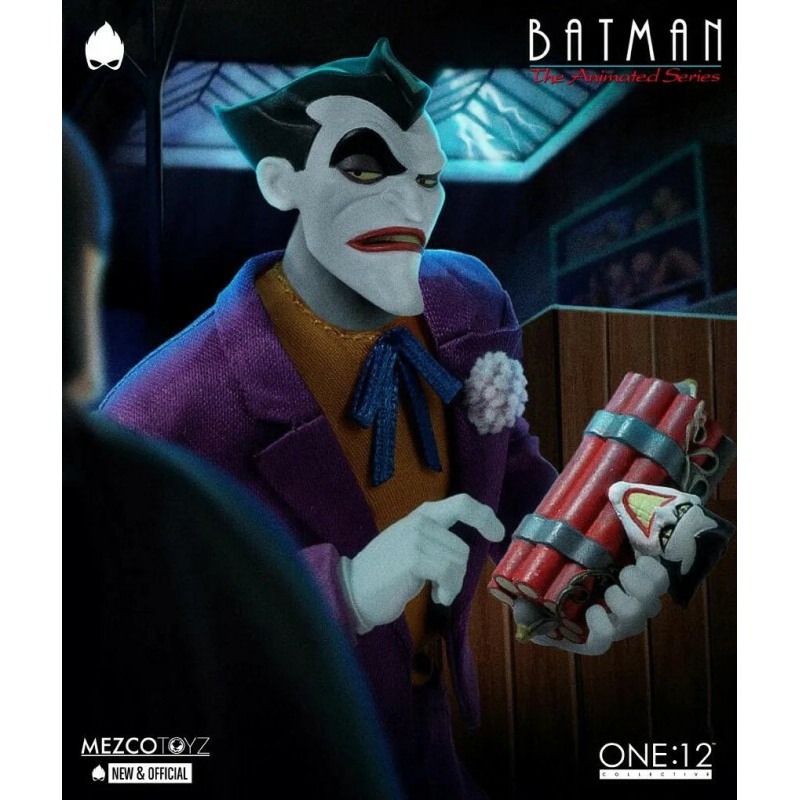 Gotham’s most infamous prankster rejoins the One:12 Collective, bringing chaos, vibrancy, and meticulous mischief. This One:12 Collective Joker embodies the dramatic threat of Batman: The Animated Series, clad in his signature purple suit with bowtie and boutonnire. Four interchangeable head portraits are included, each displaying a unique, exaggerated expression mirroring the Joker’s deranged persona. In the series, the Joker is both a showman and a psychopath, his warped humor, intricate plans, and erratic violence making him one of Gotham’s most perilous criminals and Batman’s most iconic foe. This edition comes packed with a variety of signature accessories, from a dagger-hiding cane to explosive surprises like bombs, grenades, and TNT. Whether posed mid-plot or standing proud post-punchline, this figure offers countless display options.