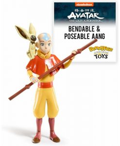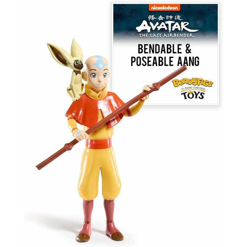 This authentic, intricate bendable figure of Aang from Avatar: The Last Airbender includes a removable stand for display and is approx 7″ in height. Aang comes complete with his Airbender staff and his winged lemur companion Momo.
