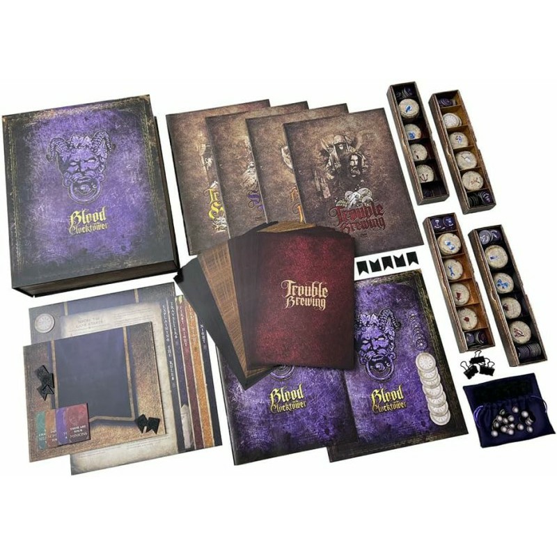 In the quiet village of Ravenswood Bluff, a demon walks amongst you. During a hellish thunderstorm, on the stroke of midnight, there echoes a bone-chilling scream. The townsfolk rush to investigate and find the town storyteller murdered, their body impaled on the hands of the clocktower, blood dripping onto the cobblestones below. A Demon is on the loose, murdering by night and disguised in human form by day. Some have scraps of information. Others have abilities that fight the evil or protect the innocent. But the Demon and its evil minions are spreading lies to confuse and breed suspicion. Will the good townsfolk put the puzzle together in time to execute the true demon and save themselves? Or will evil overrun this once peaceful village?