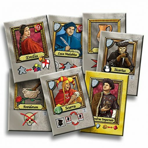 Each round, you plan send your family members to the Genoese boroughs to hire new employees, get new workers, and convince the local lord that your family is worth a marriage with his beautiful daughter. If you want to succeed, you have to send the right person in the right place.