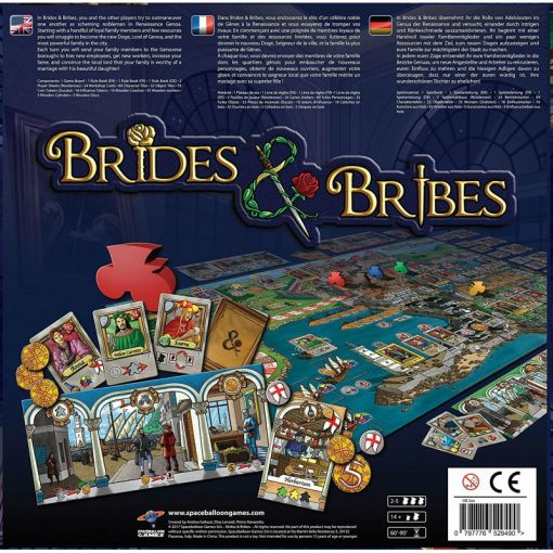 In Brides and Bribes, a strategy game played over six rounds, each player takes the role of a powerful family of Genoa. Carefully employing your family members, each of whom has a unique ability, is the key to your success.