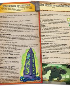 Crowns and Quests is the newest expansion to Castle Panic. It adds 12 playable characters with unique abilities, along with quests that the players must work together to complete while defending the castle. Quests include searching for evil temples, hunting assassins, destroying magical stones that bring the enemies closer, teleporting the entire castle to safety, and more.