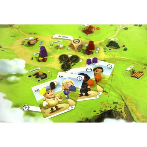 The prosperous Kingdom of Greengully, ruled for centuries by the Forever King, has issued a decree to its citizens to colonize the vast lands beyond its borders. In an effort to start a new village, the Forever King has selected six citizens for the task, each of whom has a unique set of skills they use to build their charter.