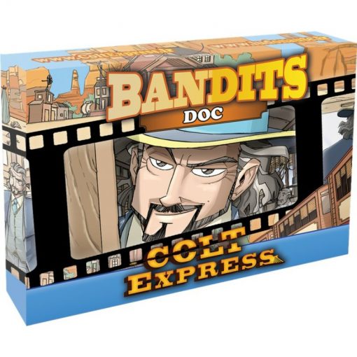 In the Doc expansion, players compete to gain the respect of Doc, but not in a friendly way. When a bandit shoots or punches Doc, they take Doc’s respect card. The bandit who has this card makes all decisions in Doc’s place.