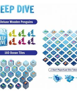 Deep Dive is a press-your-luck set-collection game in which you use your waddle of penguins to dive deep into the ocean to amass the most bountiful collection of food!