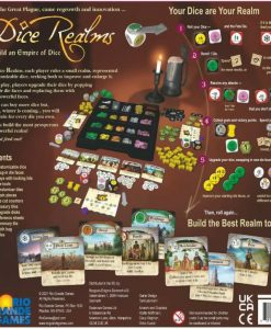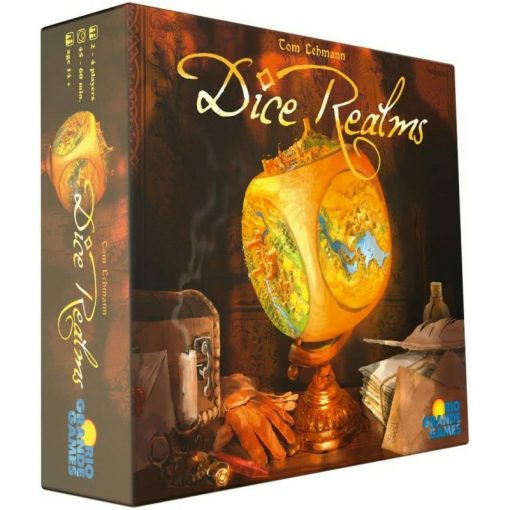 In Dice Realms, players vie to improve and expand their Medieval realms, while contending with Fate. Realms are represented by customizable dice with faces that can be popped out and upgraded for better ones.