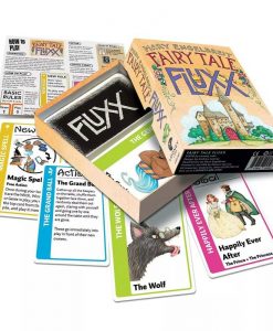Fairy Tale Fluxx, illustrated by renowned folk artist Mary Engelbreit, brings the zaniness of “the card game of ever changing rules” to the land of “happily ever after”, and the results are fit for a king! Gather Keepers to fit the current fairy tale Goal and you win — but look out for the Witch and the Wolf!