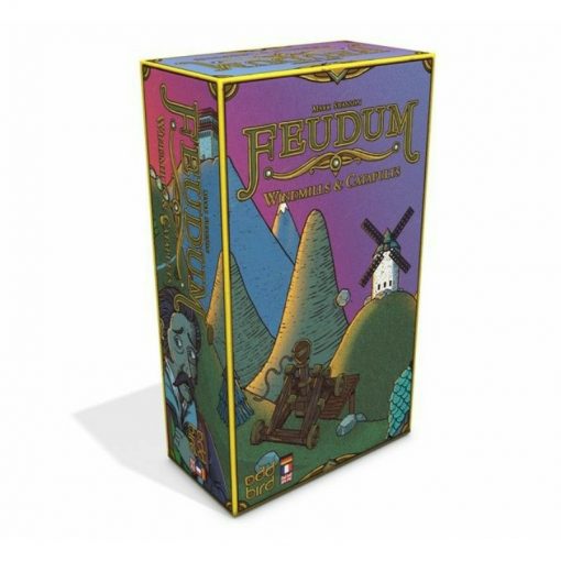 Feudum: Windmills & Catapults is a riveting and rambunctious region tile expansion. The game adds new region tiles, royal writs, a wooden windmill, and the ability to play with a 6th, pewter-colored player!