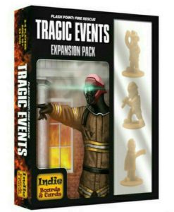 Tragic Events is an exciting new expansion to Flash Point: Fire Rescue. Included in this expansion are three new specialists, with unique figures for each: Fire Prevention Specialist, Strategist, and Supression Specialist. Also included are the Fire & Events decks, a new mechanic that makes games more intense and unique. The Fire deck replaces the Hot Spot mechanic, and ensures that the fire burns hotter and hotter as the game advances. And then when you least expect it, the Fire deck causes Events – new and different twists added to your firefighting experience. 42 unique Events, with 8 special Points of Interest, will keep your games of Flash Point exciting for years to come.