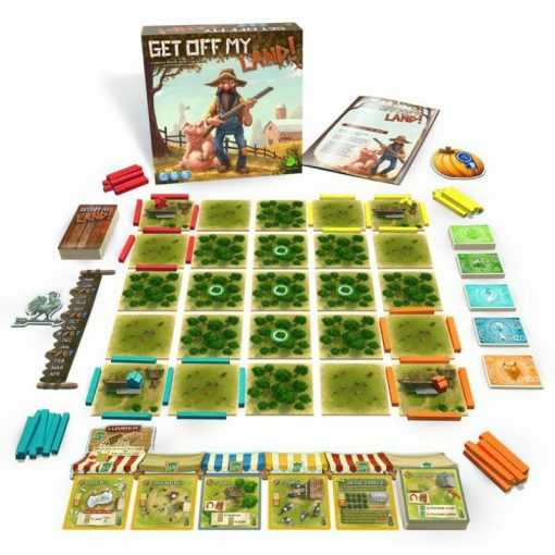 Get Off My Land! is a game of rival farmers competing for limited space and resources. The game takes place over the course a year as you start your farm from nothing, and build it up to generate more money. The player that has managed to amass the most money by the end is the winner.