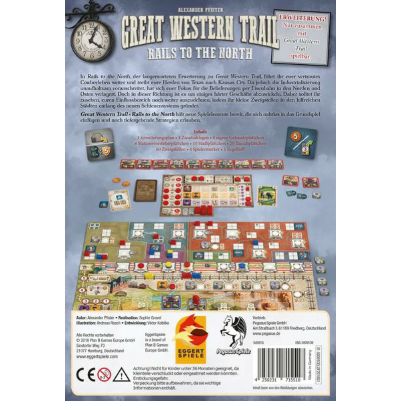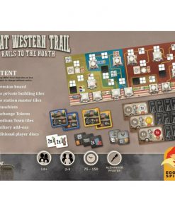 With this expansion, players deliver their herds to northeast United States with stops in Chicago, Detroit, and New York City, amongst other cities, in an effort to become the most successful cow rancher this side of the Mississippi. Be advised that business is much more difficult on this rail, so players will want to take advantage of friendly hospitality by establishing branchlets and helping form towns. In addition to the new railway system, players will also discover new station master tiles, private buildings, and an expanded player board to offer more strategic depth in their decision making.