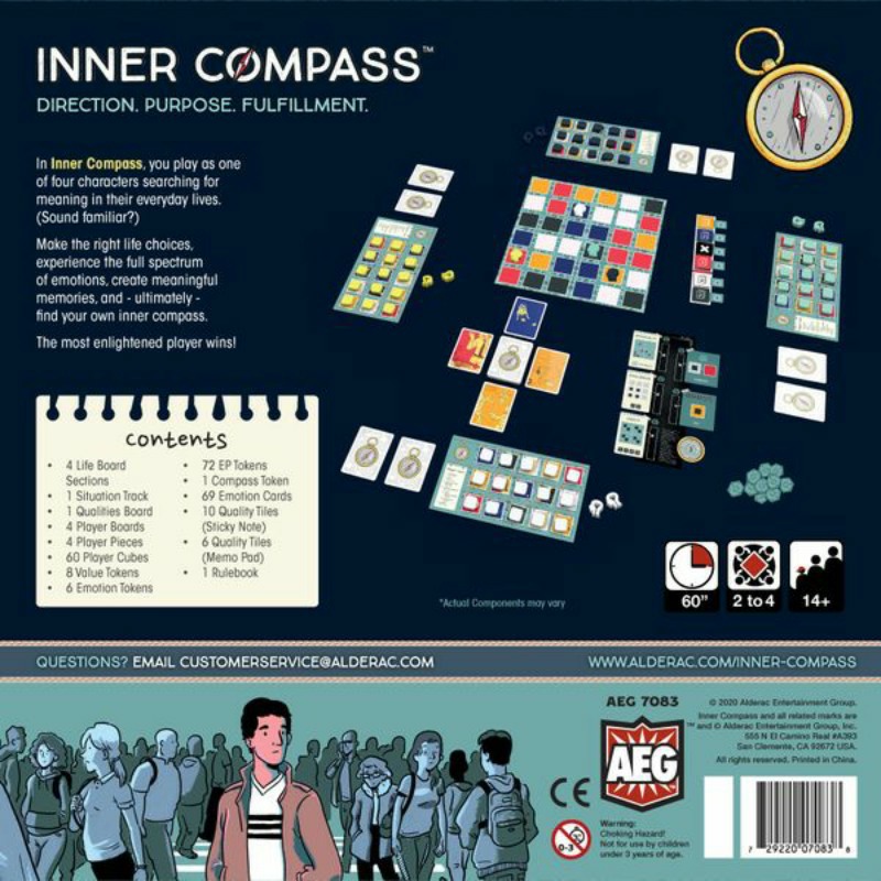 In Inner Compass, you play as one of four characters searching for meaning in their everyday lives. (Sound familiar?) Make the right life choices, experience the full spectrum of emotions, create meaningful memories, and — ultimately — find your own inner compass. The most enlightened player wins!