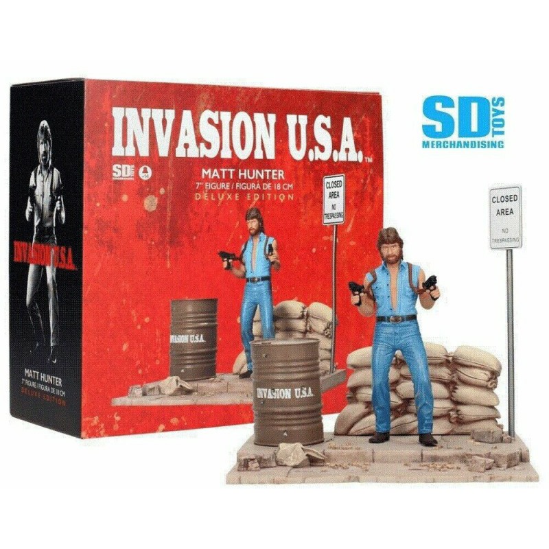 Here is the jewel in the crown of this collection of products, based on the characters of the iconic Chuck Norris films: the figure with diorama of Matt Hunter (Invasion U.S.A.). This spectacular 18 cm PVC figure immortalizes the character with his characteristic attitude and is accompanied by a typical war scenario extracted from the film.