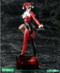 Harley Quinn is a flamboyant super-villain and an adversary of Batman usually recognized as the Joker’s girlfriend, although she has had her own strong solo career. Born Harleen Quinzel, she had been working as a psychologist at Arkham Asylum where she was assigned to the Joker and fell in love with him. This led to her adopting her own costumed persona, adapting the word harlequin, to assist him escape and cause further mayhem. Harley looks better than ever in her harlequin style outfit and holding her mallet at the ready, all in a beautifully sculpted 1/10 scale! Display Harley alongside other DC Comics characters in Kotobukiya’s ARTFX+ lineup such as the Joker or Batgirl!