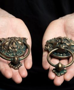 Labyrinth Door Knockers 1:6 Scale Prop Replica: High-quality polystone, 1:6 scale prop replica! Clay sculpted by Weta Workshop veteran sculptor Shaun Bolton! Expert paint job recreates an aged brass finish! Wall-mounts on the back for easy hanging! Made with references from the actual on-set props! Unsure of which door to choose? Try asking the door knockers; if you can get them to stop bickering that is. The Labyrinth Door Knockers 1:6 Scale Prop Replica features both the Ear Ring and Mouth Ring door knockers, clay sculpted by Shaun Bolton and expertly painted to recreate an aged brass finish. Door knockers include wall-mounts on the back for easy hanging and display. The Ear Ring and Mouth Ring door knockers measure approximately 3-inches long x 3/4-inches wide x 3 3/4-inches tall and 3-inches long x 1 1/4-inches wide x 4 3/4-inches tall respectively. Within the mystical Labyrinth, a pair of talking door knockers is hardly the strangest thing one may find, though countless years of having a ring stuck in your mouth or ears is enough to make any animate object more than just a little upset, and once they start arguing it’s hard to get them to stop. Best to let sleeping knockers lie, pick a door, and carry on your way. Ages 14 and up.