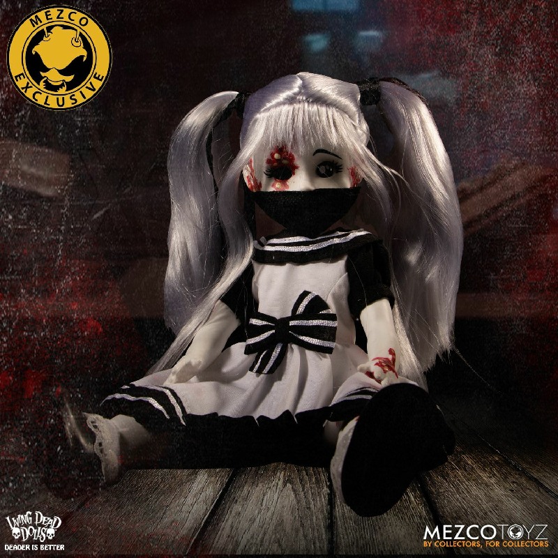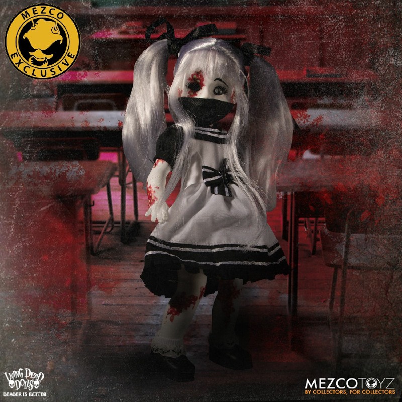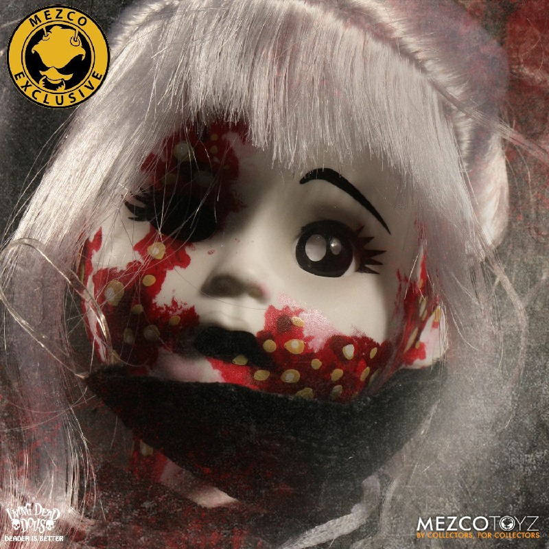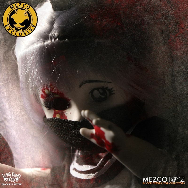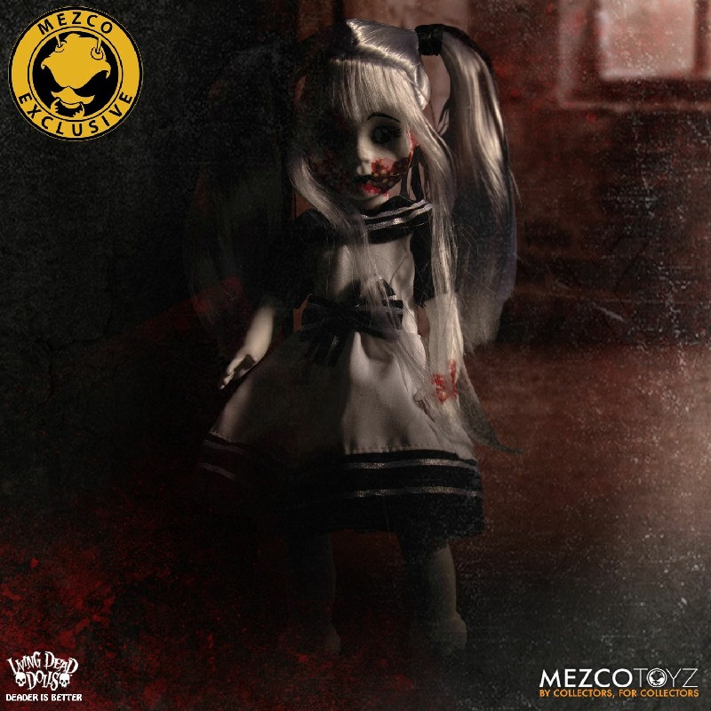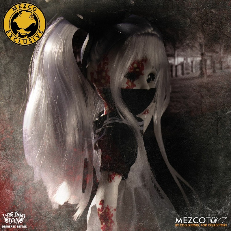 Resurrection Maggot stands 10” tall and features 5 points of articulation. She is packaged in a traditional Living Dead Dolls coffin, perfect for display.