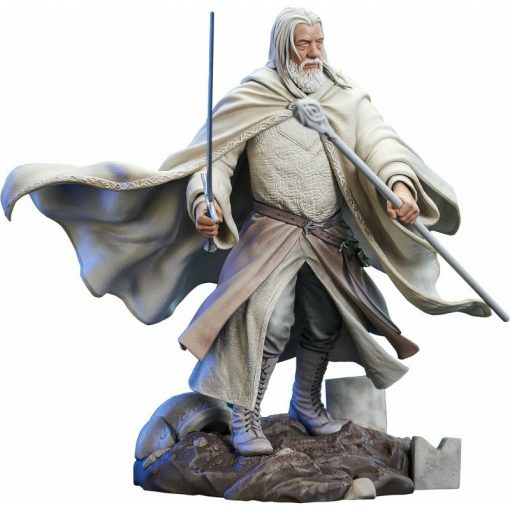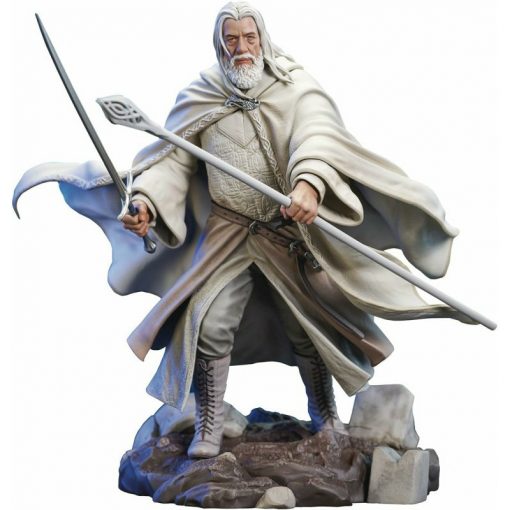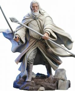 The Lord of the Rings Gallery Gandalf Deluxe Statue: You shall not pass! Wearing his white robes from the second and third movies in The Lord of the Rings trilogy, Gandalf holds sword and staff in hand, ready to do battle with the next orc or wizard to challenge him. Measuring approximately 9-inches tall, The Lord of the Rings Gallery Gandalf Deluxe Statue comes packaged in a full-color window box. For ages 14 and up.