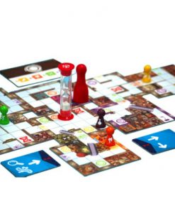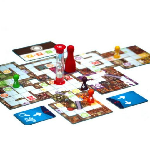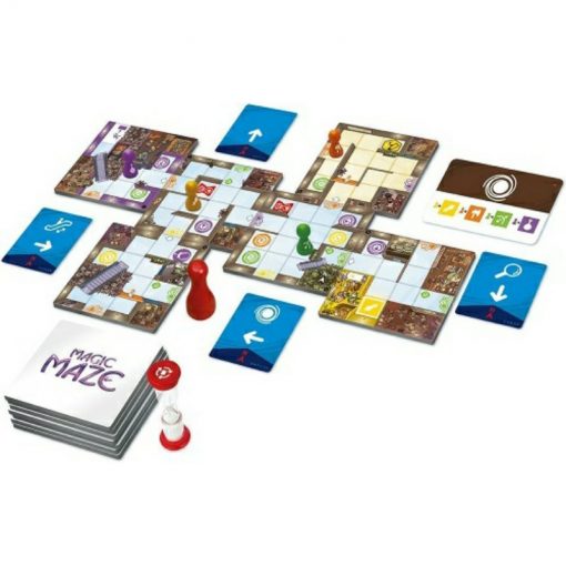 Magic Maze is a real-time, cooperative game. Each player can control any hero in order to make that hero perform a very specific action, to which the other players do not have access: Move north, explore a new area, ride an escalator… All this requires rigorous cooperation between the players in order to succeed at moving the heroes prudently. However, you are allowed to communicate only for short periods during the game; the rest of the time, you must play without giving any visual or audio cues to each other. If all of the heroes succeed in leaving the shopping mall in the limited time allotted for the game, each having stolen a very specific item, then everyone wins together.