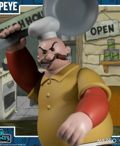 - Popeye – Known for his constant muttering, squinting, and superhuman strength after gulping down a can of spinach, Popeye will do whatever it takes to rescue his beloved Olive Oyl from the wicked hands of Bluto. Popeye comes with a spinach can that he can hold and two pairs of interchangeable arms.