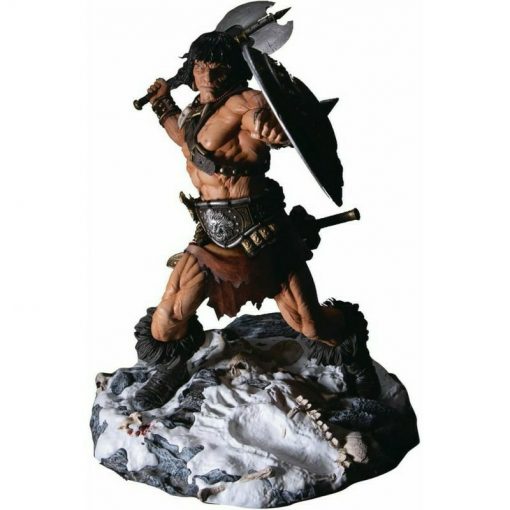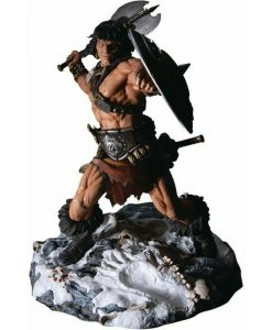 Conan the Cimmerian! Atop a snow-dusted terrain base, he stands 12-inches tall! Statue includes interchangeable heads and arms and multiple weapons. Features a removable fur-lined cloak and necklace. The Conan the Cimmerian Static Six 1:6 Scale Statue is derived from Robert E. Howard’s legendary character. Conan stands atop snow-dusted terrain that’s littered with skulls at his feet. Dramatically poised to strike his enemy, the Cimmerian is sculpted in a powerful stance, ready to wield the included weaponry of your choosing. Measuring roughly 12-inches tall, he comes with two exchangeable heads – scowling stare and roaring helmeted portrait – as well as a removable fur-lined cloak and necklace, and interchangeable weapons and arm gestures that enable a multitude of display options. Get barbaric – order yours today!