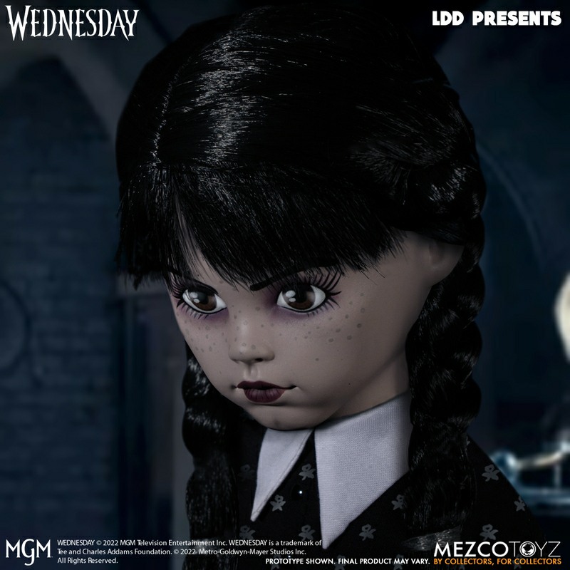 LDD Presents Wednesday stands 10” tall and features 5 points of articulation. She is packaged in a window box, perfect for display.