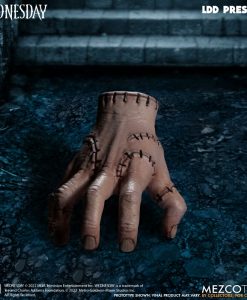 Wednesday features an all new look that is still somehow familiar. Outfitted in a collared dress, black leggings, and boots. She comes complete with a new painted portrait, signature pig tails and her trusty hand-servant, Thing, in a static pose.