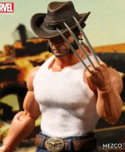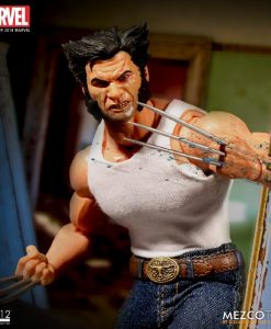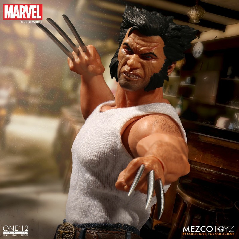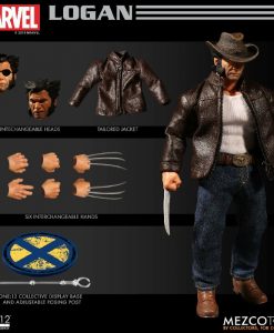 Soldier • Weapon • Mutant. The One:12 Collective Logan figure invokes his rugged and feral nature. He features three head portraits, a dog tag, a fitted tank-top with jeans, a belt with a western-style buckle, a leather-like jacket with a functional zipper, and cowboy boots. Logan comes with six interchangeable hands – both with and without his trademark claws extended.