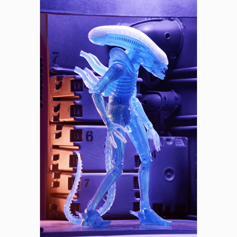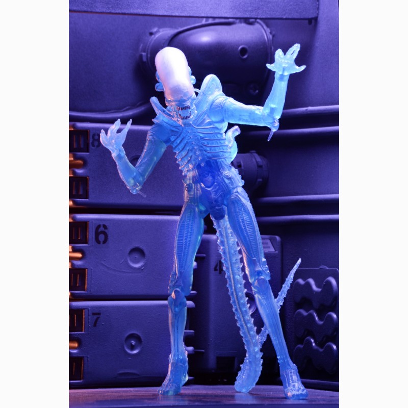 Classic Kenner Alien tribute that’s cast in translucent blue plastic just like the original. Xenomorph action figures stand over 9″ tall and feature over 30 points of articulation with a bendable tail.