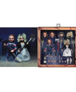 This Ultimate action figure 2-pack includes Chucky and Tiffany, who features a fabric skirt and an extra set of removable arms so she can wear her iconic leather jacket. The set also includes tons of accessories to recreate the movie’s best scenes: 6 interchangeable heads, 2 shovels, 2 pistols, 2 knives, bottle, baster, necklace and more! The figures stand 4″ tall and have over 20 points of articulation.