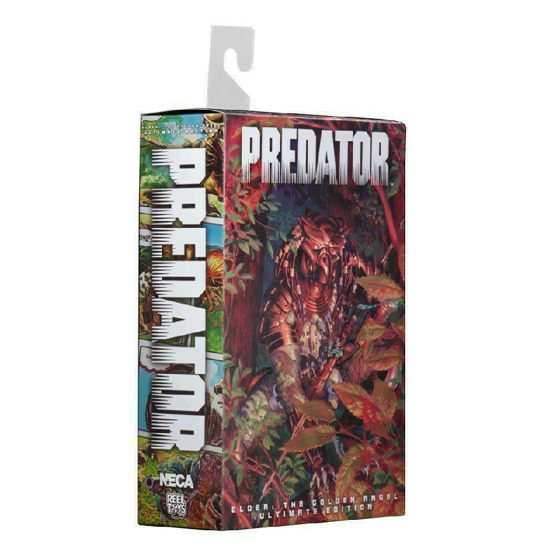 The figure comes with 3 different heads, alternate hands, trophy necklace, smart disc, shoulder cannon, sword that fits in a back sheath, and flintlock pistol that tucks through his belt. Golden Angel Elder stands approximately 8.25 tall and features over 30 points of articulation. Collector-friendly deluxe window box packaging with opening flap.