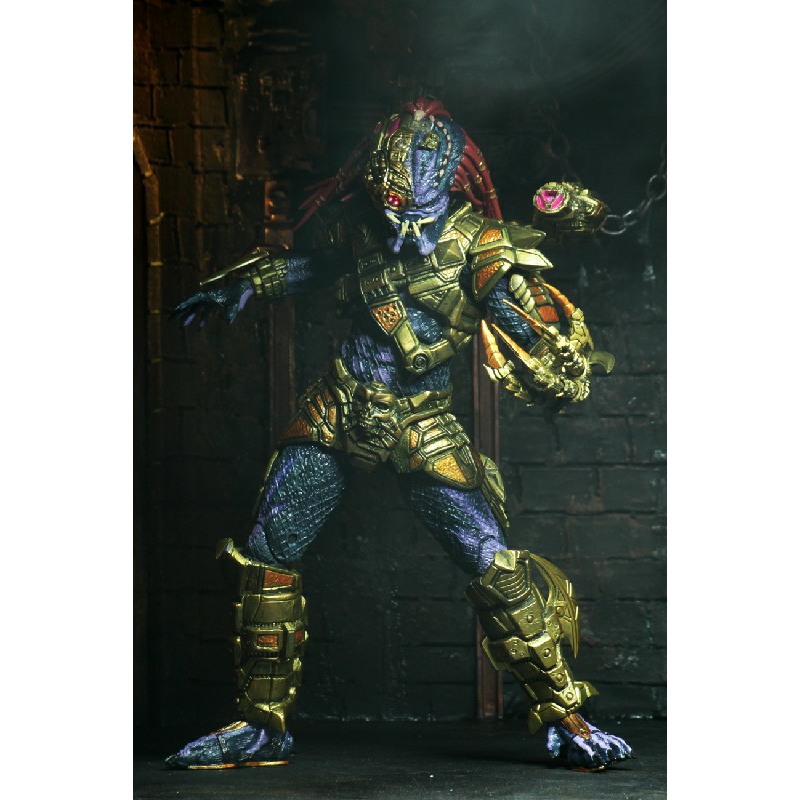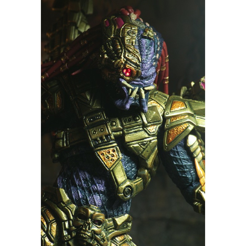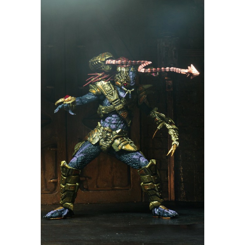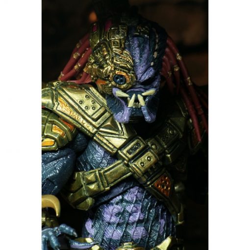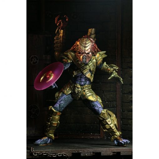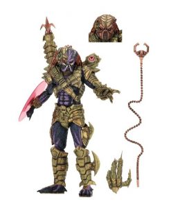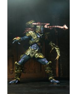 Taking inspiration from the 1990s designs, our team has created a modern tribute with extra detail and articulation to bring this Predator into the new millennium. The original figure has electronic elements and this one does too—a LED targeting eye to home in on his prey. Lasershot Clan Leader stands 8.5″ tall, has over 30 points of articulation and comes with removable mask, detachable wrist shield, flexible grappling hook that attaches to his assault cannon, and a swappable clawed left hand with articulation.