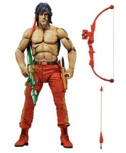 Following Sylvester Stallone’s appearance as Rambo in First Blood Part II, the side-scrolling game was released in 1988 for the super popular 8-bit home console. Rambo stands 7″ tall, with over 25 points of articulation for great poses, plus rocket launcher, knife, grenade and bow and arrows accessories. The paint deco takes a stylized approach to reproduce the game’s original cel-shaded look.