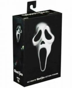 Ghost Face, a costume worn by every villain in the Scream franchise, stands approximately 7 inch tall, is dressed in an all fabric robe for full pose ability, and comes with a disturbing amount of sharp objects including 3 knives and a scythe. This Ultimate offering also comprises of 4 interchangeable heads including the original mask, the bloody variant, a zombie mask, and a glow in the dark mask.