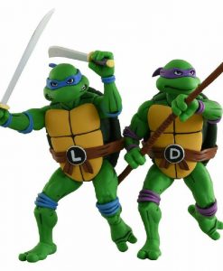 From the classic “Teenage Mutant Ninja Turtles” cartoon series come this pack with 2 detailed action figures. Both stand approx. 18 cm tall and come together in a window box.