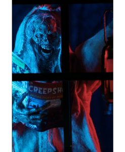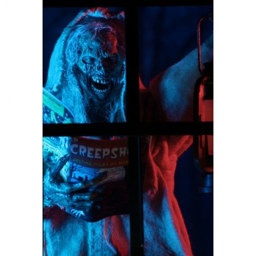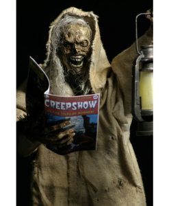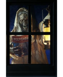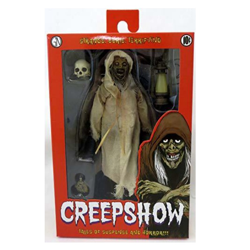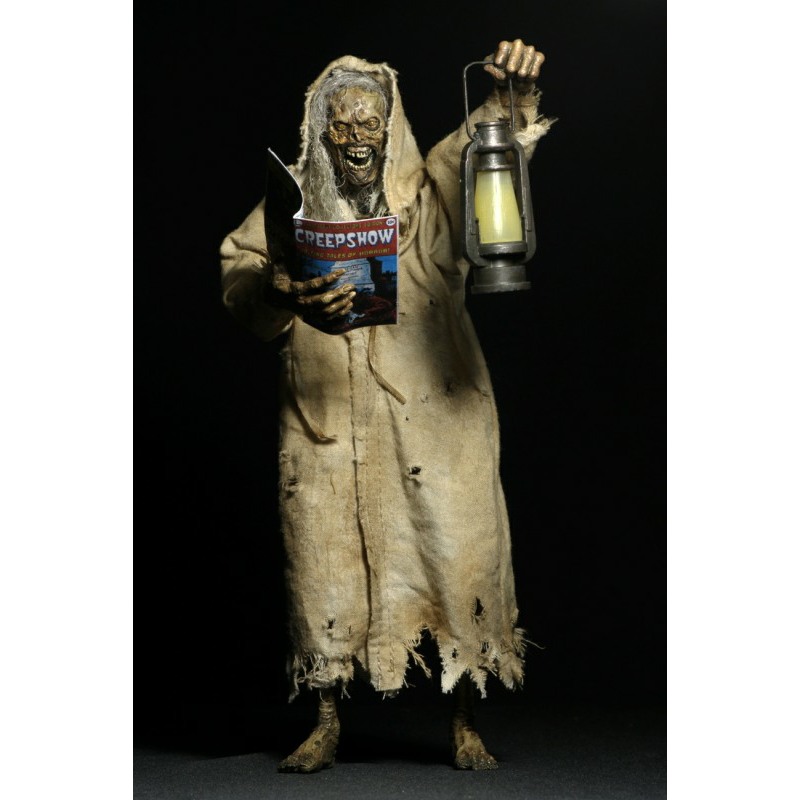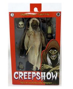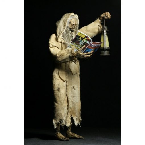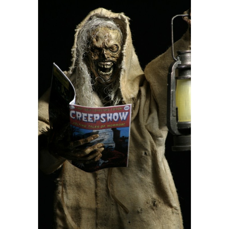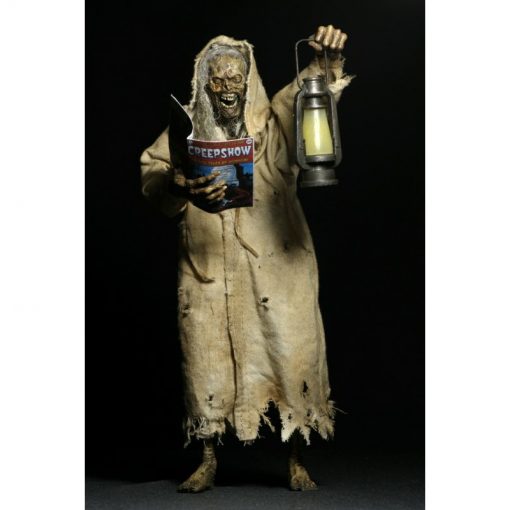 Now in action figure form, The Creep stands over 7 inches tall and is fully posable, with over 25 points of articulation. The figure features synthetic hair and a fabric robe with wire armature so you can give it just the right positioning. The Creep also comes with lantern, skull and Creepshow comic book accessories.