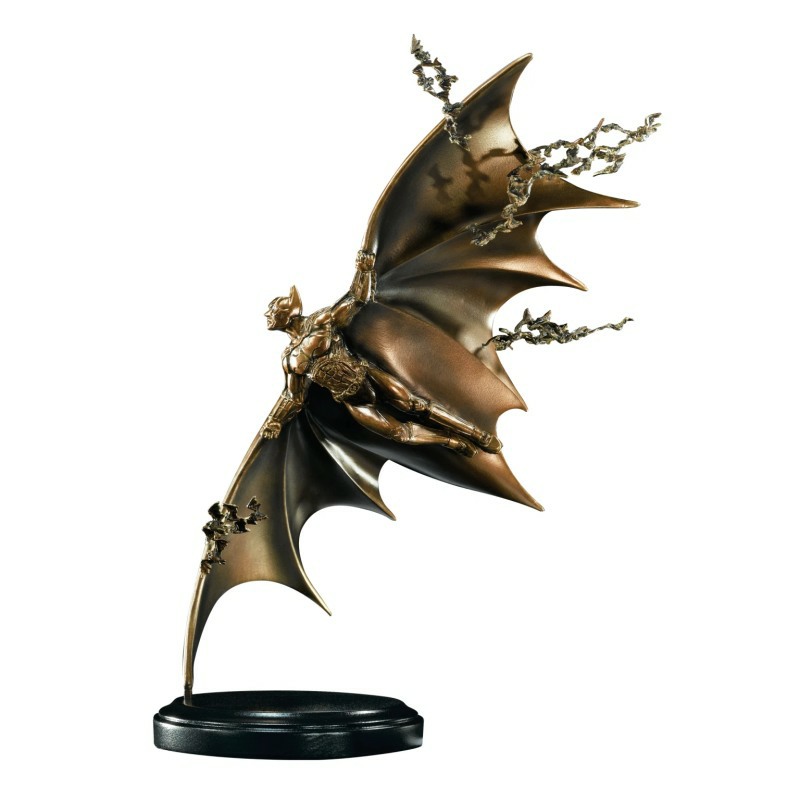 Spectacularly cast in solid bronze, this dramatic gliding sculpture of Batman measures approx. 11″ in height and is set on a hardwood base.
