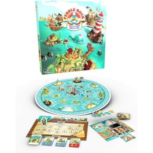 Pebble Rock Delivery Service is an all-ages “Pickup and Delivery” game. The game has enough depth to entertain seasoned gamers, while the core mechanics are simple enough to teach to young sea-captains.