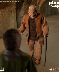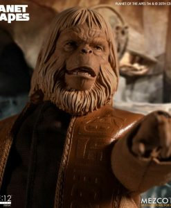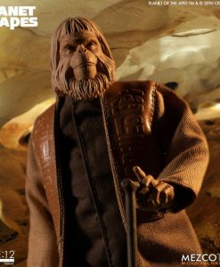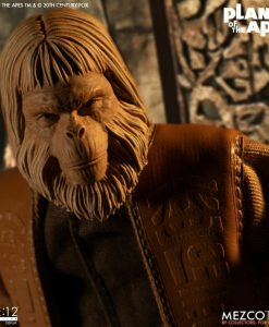 Leading member of the Ape National Assembly, the One:12 Collective Dr. Zaius is outfitted in a tunic shirt and overcoat with embossed detailing, and pleated pants. Included is a miniature stone-like Lawgiver statue, the central orangutan prophet deity. The Chief Defender of Faith comes with a range of accessories as seen in the film such as a human doll, walking cane, two Sacred Scrolls, and a paper airplane.