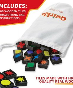 This tactile wooden block game combines the logic and strategy of Set with the creative multi-manoeuvre game play of Scrabble. Easy-to-learn rules mean you’ll be creating columns and rows of matching colours and shapes in no time. Look for opportunities to score big by placing a tile that touches multiple pieces and matches both shapes and colours; the player with the most points wins. 108 blocks.