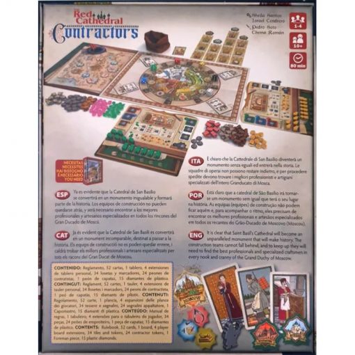 The expansion comes in a box that contains almost as much content as the original game and takes the experience into another dimension. In Contractors we find 10 new guilds that can be combined with those from the basic game, 6 additional blueprint cards, and a new card for the solo mode. Many of these new guilds use the Contractors module, which among other things, adds a new board containing a map of Russia. We Will send our contractors throughout Russia to recruit the talent of the best specialists and artisans of the country to aid in the construction of the cathedral.