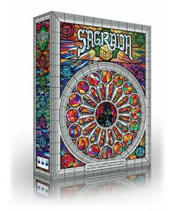 In more detail, each player builds a stained glass window by building up a grid of dice on their player board. Each board has some restrictions on which color or shade (value) of die can be placed there. Dice of the same shade or color may never be placed next to each other. Dice are drafted in player order, with the start player rotating each round, snaking back around after the last player drafts two dice. Scoring is variable per game based on achieving various patterns and varieties of placement…as well as bonus points for dark shades of a particular hidden goal color.