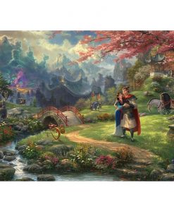 The Painter of Light, Thomas Kinkade captures the timeless magic of the entire beloved story of Disney’s Mulan in one image!Mulan and Li Shang stand beneath the beautiful cherry blossoms with a stunning backdrop featuring all of our favourite characters. Manufactured to Schmidt’s Premium Quality 6 Star-Quality. The 6 unique advantages are:1. Great variety of forms thanks to individually shape pieces2. Perfect cohesion thanks to specially-developed cardboard which is 2.25 mm thick3. Perfect accuracy of fit thanks to an especially fine punching knife4. Special matt varnish for jigsaw puzzles without reflections5. Linen structure6. Exclusive designCombined, the quality and fit of Schmidt’s six star quality mean that a 1000 piece puzzle can be lifted up vertically once complete without the need of any puzzle conserver doing this jigsaw a satisfying experience for any puzzle lover.The completed puzzle measures: 693 mm x 493 mm.