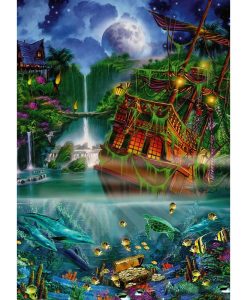 Golden treasure from a shipwreck lies beneath the waves in this stunning image by artist John Enright. Manufactured to Schmidt’s Premium Quality 6 Star-Quality. The 6 unique advantages are: 1. Great variety of forms thanks to individually shaped pieces 2. Perfect cohesion thanks to specially-developed cardboard which is 2.25 mm thick 3. Perfect accuracy of fit thanks to an especially fine punching knife 4. Special matt varnish for jigsaw puzzles without reflections 5. Linen structure 6. Exclusive design Combined, the quality and fit of Schmidt’s six star quality means that a 1000 piece puzzle can be lifted up vertically once complete without the need of any puzzle conserver making this jigsaw a satisfying experience for any puzzle lover. The complete puzzle measures: 493 mm x 693 mm.