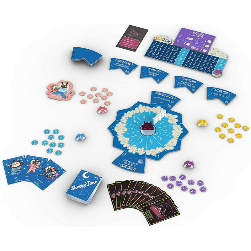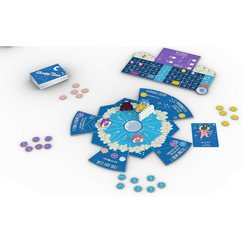 On a turn in Sheepy Time, you play one of two cards in your hand to move around the circle, potentially activating neat effects, while jumping the fence each time you complete a lap to put yourself in position to earn more points. When refilling your hand, however, if you draw a Nightmare card, you have to activate the Nightmare — and if it crosses your path, your human may be scared awake, which means you’ll earn no points this round. How far do you dare push your Zzzs to prove you’re the dreamiest sheep of all!