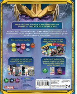 Pick your tokens carefully, recruit characters to gain Infinity Points and bonuses. These bonuses help you recruit more powerful heroes and acquire locationsÂ… until you gather enough characters, power, and Infinity Points to trigger the endgame!