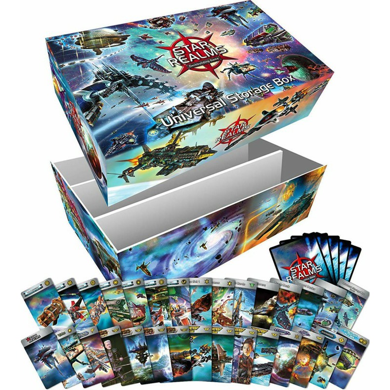 This box will hold your entire Star Realms collection, with or without sleeves, with room to spare for future sets and even a playmat! Use the included foam blocks to hold your cards firmly in place. The high quality plastic dividers included will allow you to separate your cards by set, and/or have a deck ready to play with dividers for Trade Deck, Explorers, Personal Decks and Score Cards.
